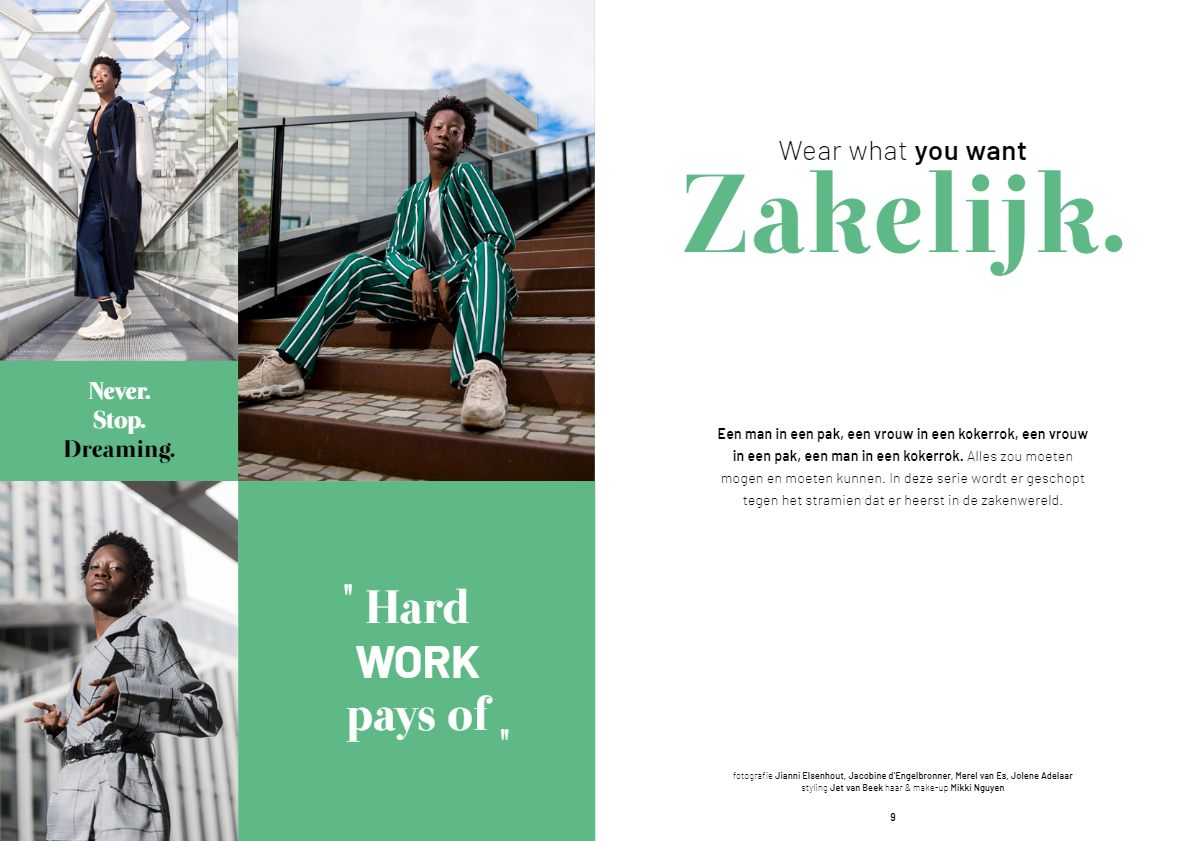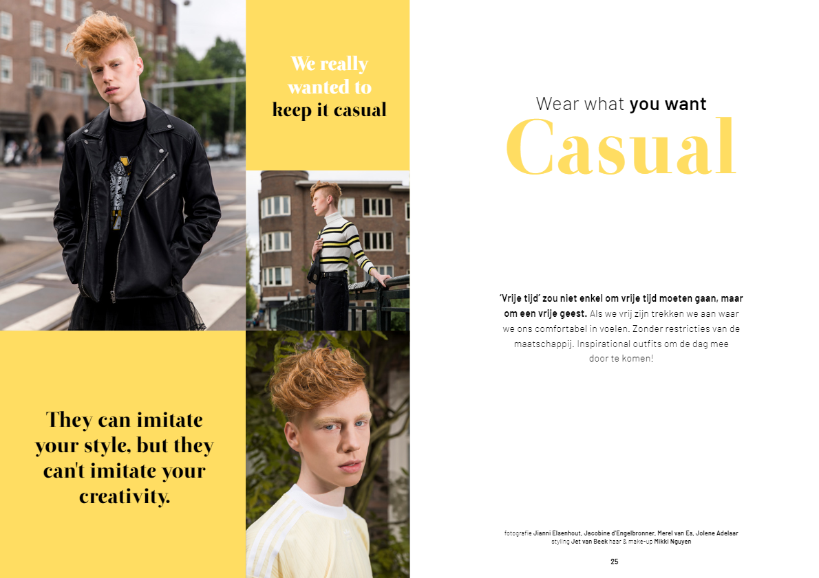 Non-profit project in collaboration with Transgender Netwerk Nederland. A magazine that showcases that our clothing doesn't define our gender. Groupproject by: Merel van Es, Jolene Adelaar, Jacobine D'Engelbronner & Jianni Elsenhout